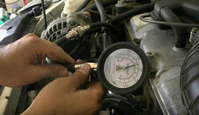 * Bir kişi şoför mahalline geçip marşa basar, gaz pedalına sonuna kadar basar (gaz kelebeği sonuna kadar açık olmalı) ve birkaç saniye, motor en az 4 çevrim, yani 4 kez sıkıştırma yapacak kadar ve manometrenin ibresi artık daha fazla yükselmeyinceye kadar) döndürülür.